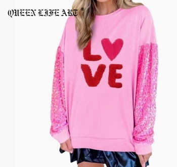 कारखाने कस्टम निर्माण 2025 वैलेंटाइन डे टी-शर्ट 3 डी लाल अनुक्रमित प्रेम पत्र ढीले महिलाओं के फैशन बुनाई रंग प्रिंट